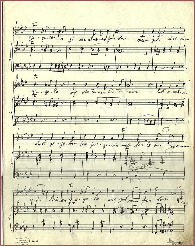 | Title: | Oy Iz Dos A Velt by Sholom Secunda. Orchestral Parts. Piano Vocal Score: No 7 - Duet "Yiddisher Yingale [Little Jewish Boy]" Page 5 |