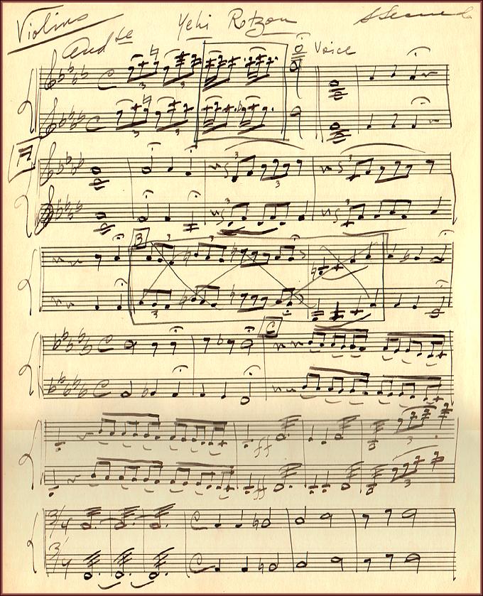 | Title: | Yehi Rotzonby Sholom Secunda. To be performed at the "Kedushah" (morning service) on Shabbat and Festivals. Cantorial Music. Orchestral Parts. Violin Part Page 1 |