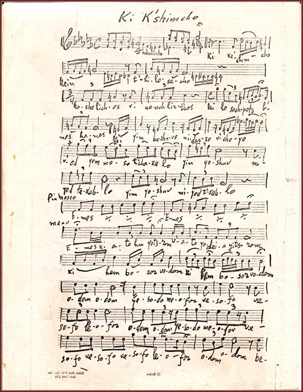 | Title: | Ki K'schmchoby Sholom Secunda. To be Performed on the High Holy Days. Cantorial Music. Orchestral Parts. Vocal melody Page 1 |