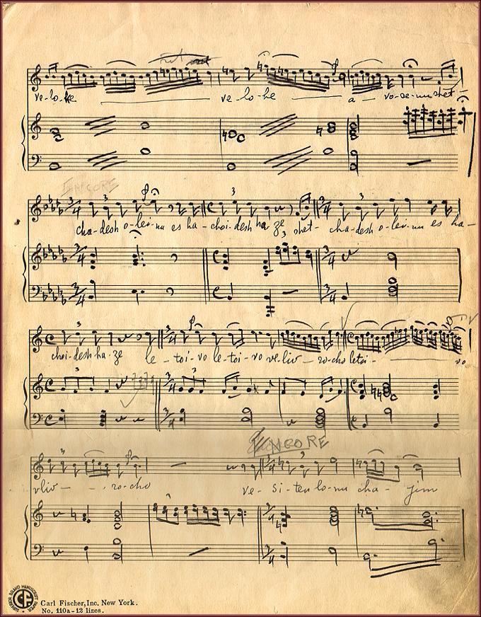 | Title: | Yehi Rotzonby Sholom Secunda. To be performed at the "Kedushah" (morning service) on Shabbat and Festivals. Cantorial Music. Orchestral Parts. Piano Vocal Score Page 3 |