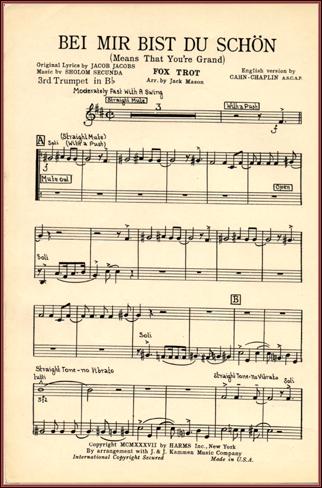 | Title: | "Bei Mir Bist Du Schon (Means That You're Grand)" by Sholom Secunda. Orcestral Parts (arranged). Trumpet Part Page 1 |