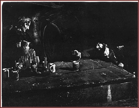 Yiddish actors on stage in a tavern scene