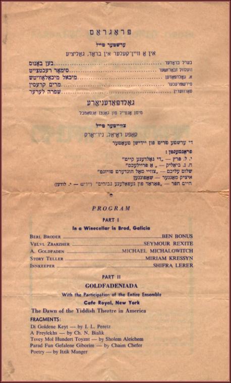 | Title: | Program for From Brod to Broadway by Wolf Yunin and Sylvia Yunin, directed by Ben Bonus, p.3 |