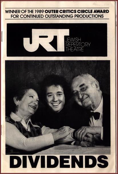 | Title: | Program for Dividends at the Jewish Repertory Theater, starring from l. to r., Reizl Bozyk, James Rutigliano and Fyvesh Finkel |