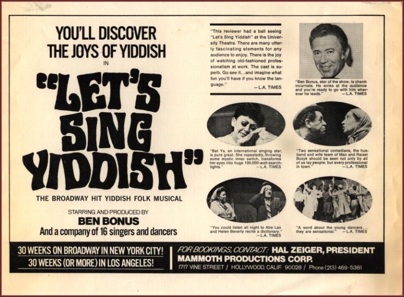 | Title: | flyer for Let's Sing Yiddish, starring Ben Bonus and Mina Bern |