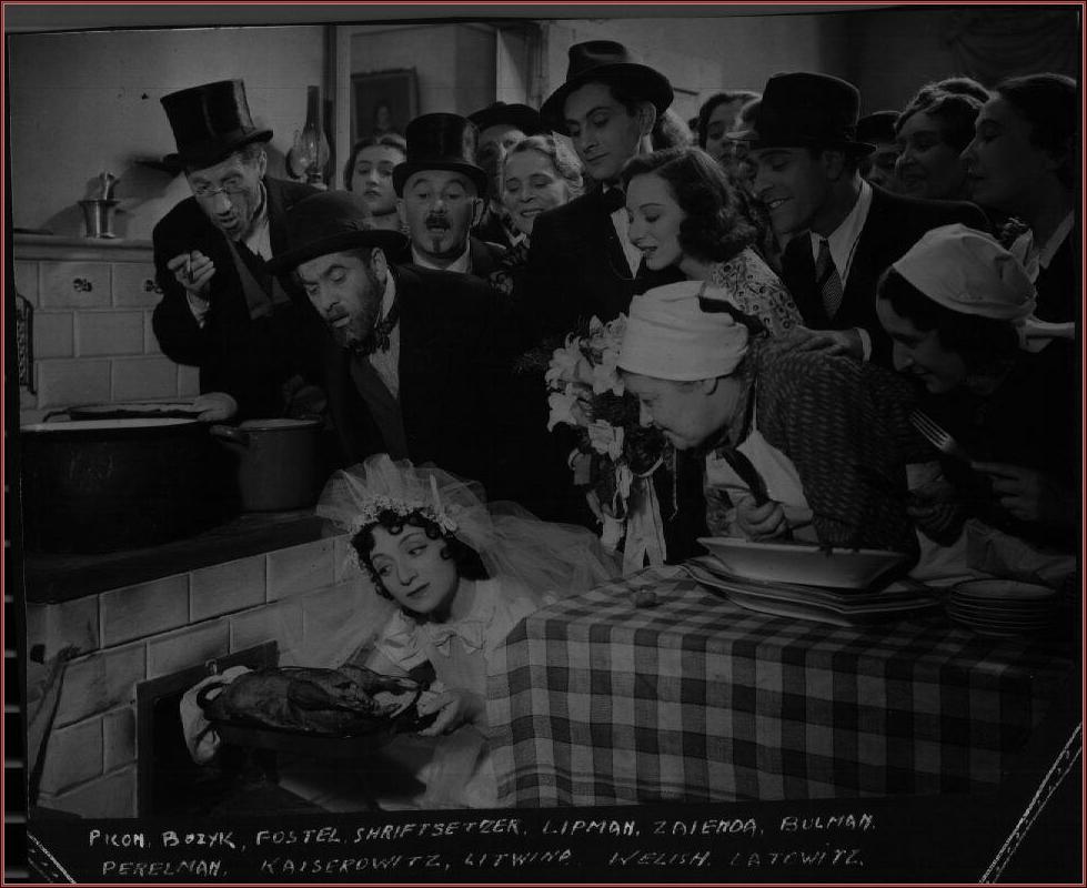 | Title: | Molly Picon in Mamele with from left (standing front): Simche Fostel, Max Bozyk, Edmund Zayenda, Gertrude Bullman (with bouquet) and Max Perlman. |