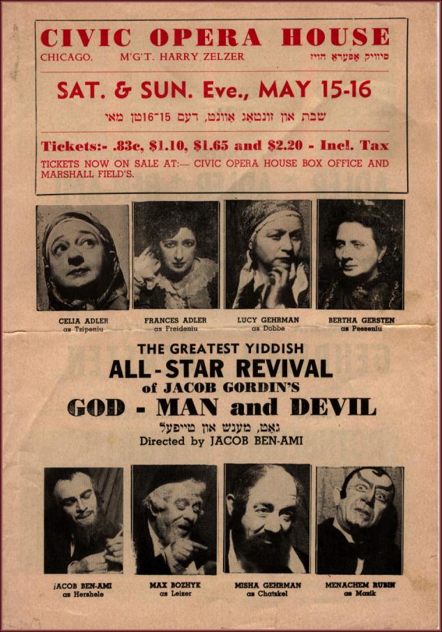 | Title: | program for God, Man and Devil, by Jacob Gordin at the Civic Opera House,p.1 |
