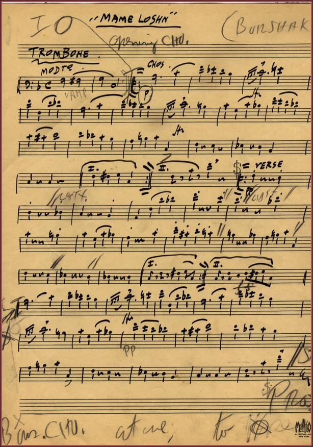 | Title: | sheet music for Mame Loshn- trombone |