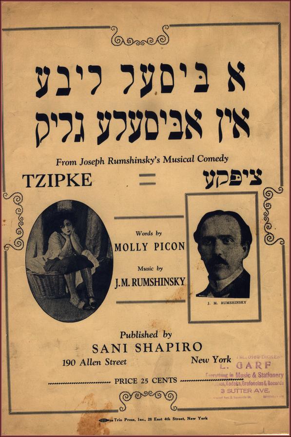 | Title: | sheet music for Tsipke, music by Joseph Rumshinsky, words by Molly Picon, p.1 Page 1 |
