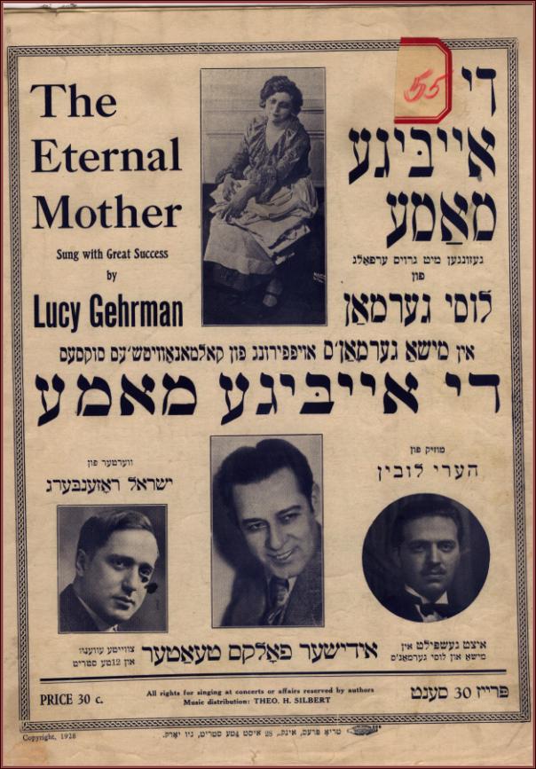| Title: | sheet music for Di Aybige Mame (The Eternal Mother)as sung by Lucy German with Misha German, music by Harry Lubin, words by Israel Rosenberg,p.1 Page 1 |