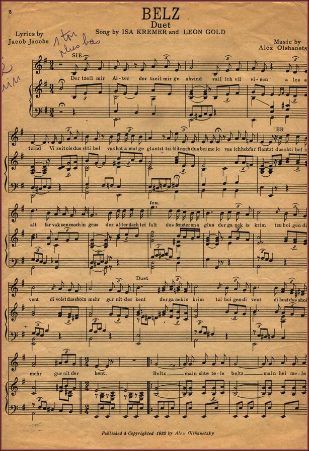 sheet music for Mayn Shtetele Belz, p.2 Page 2