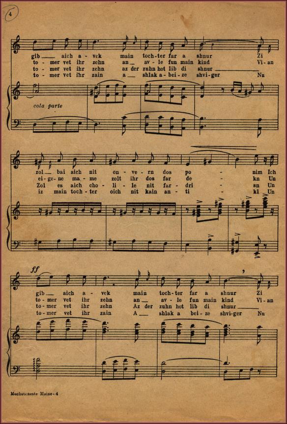 sheet music for Di Tsvey Makhutenestes, p.4 Page 4