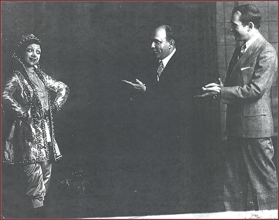 | Title: | Molly Picon in costume for the Little Czar with composer Joseph Rumshinksy and Jacob Kalich, 1927 |