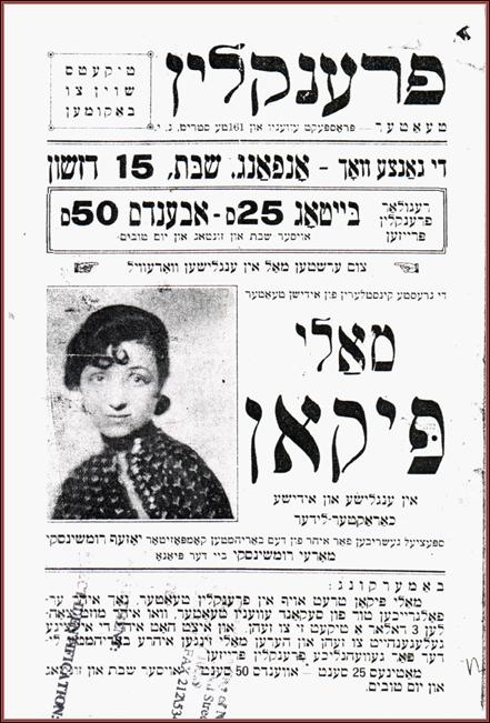 Poster advertising Molly Picon's appearance at the Franklin Theater