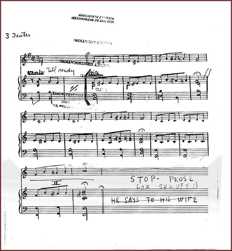 | Title: | Molly Picon's handwritten sheet music for "The Whole World is a Theater" with music by Abe Ellstein and lyrics by Picon |