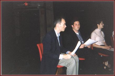 | Title: | Yiddish scholar Shane Baker (the scribe) and Shay Guttman (Reb Eli) at a reading of Caraid OBrien's translation of GodofVengeance at the Henry Street Settlement, June 1999 |