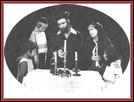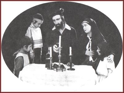 | Title: | In the center is Jacob Kalich. Next to him is real-life wife Molly Picon in the film Mizerekh un Maurev (1923). |
