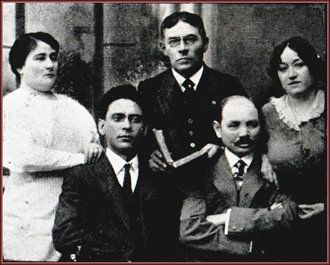 | Title: | Standing: Mrs. Kozel, Sam Adler, Nadia Neroslavska. Sitting: Peretz Sandler and Mr. Kozel (Mozir, 1916) |
