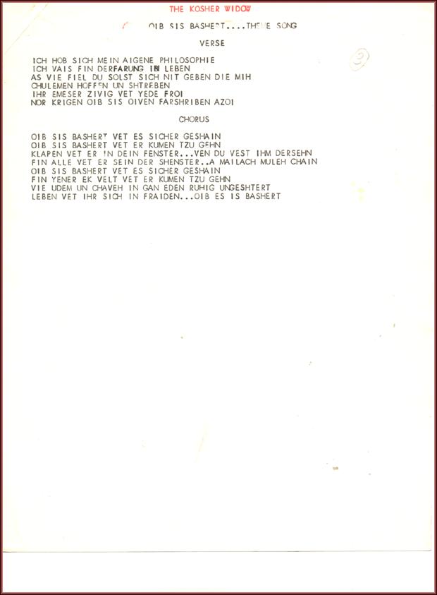 The Kosher Widow by Sholom Secunda. Miscellaneous Scores and Parts. Lyric sheet: "Oib siz Bashert" (If It's Fated)