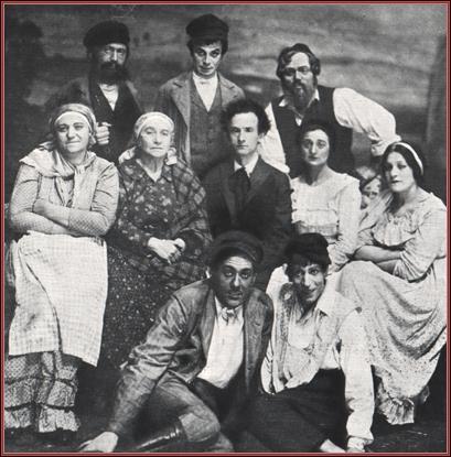 | Title: | First ensemble of Peretz Hirschbein's Green Fields, produced May 30, 1919 in New York at the Irving Place Theater under Jacob Ben-Ami's direction; Top: Yekhiel Goldsmith, Jacob Ben-Ami, Gershon Rubin; Center: Anna Appel; Bina Abramovitch, Peretz Hirschbein, Celia Adler, Sonia Gurska; Bottom: Misha German, Lazar Freed |
