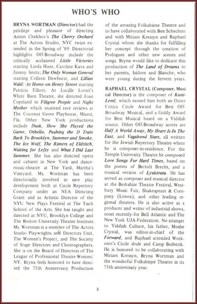 | Title: | Program for M. Kressyn's adaptation of Nakhum Stutchkoff's The Land of Dreams at the Folksbiene Playhouse |