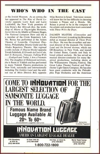 | Title: | Playbill for Those Were the Days starring Bruce Adler, Mina Bern, Eleanor Reissa, Robert Abelson and Lori Wilner with music by Zalmen Mlotek |