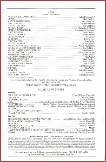 | Title: | Program for The Rothschilds starring Mike Burstyn |