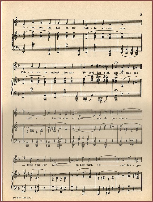 | Title: | Sheet music for Joseph Rumshinsky's You are the light of my eyes as sung by Menashe Skulnik from the Louis Freiman play Yosl and his Wives, p. 3 |