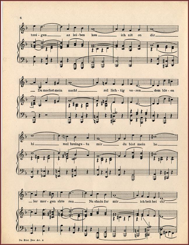 | Title: | Sheet music for Joseph Rumshinsky's You are the light of my eyes as sung by Menashe Skulnik from the Louis Freiman play Yosl and his Wives, p. 4 |