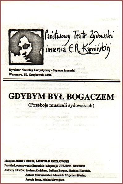 | Title: | Polish Yiddish Theater program for a production of Sholem Aleichem's Tevye in 1991. The theater is named after Ester Rokhl Kaminska |