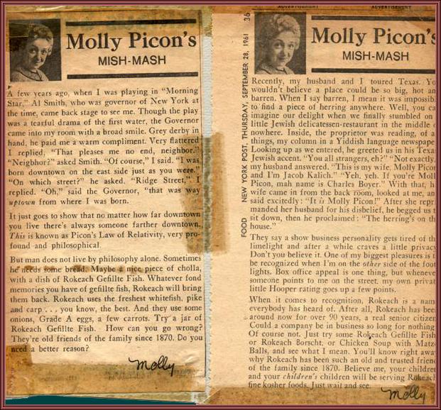 | Title: | Molly Picon's newspaper column "Mish-Mash" |