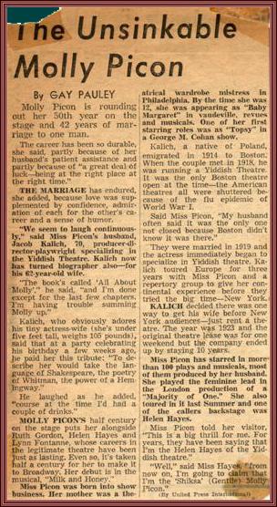 an article about Molly Picon in Milk and Honey