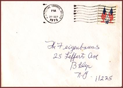 a card from Molly Picon to the Feigenbaums