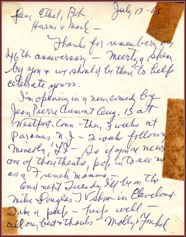 | Title: | a card from Molly Picon to the Feigenbaums mentioning several television appearances |