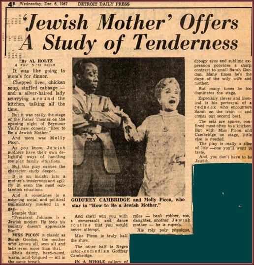 | Title: | a newspaper review of Molly Picon and Godfrey Cambridge in How to be a Jewish Mother |
