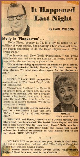 | Title: | an article about Molly Picon and her new play Paris is Out |