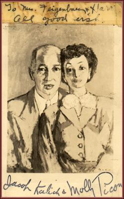 | Title: | A signed drawing of Molly Picon and Jacob Kalich to the Feigenbaum family |