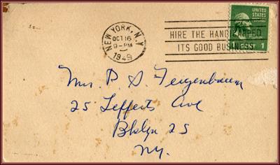 | Title: | a postcard from Molly Picon to the Feigenbaums |
