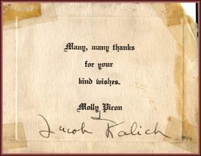 a card to the Feigenbaums from Molly Picon and Jacob Kalich