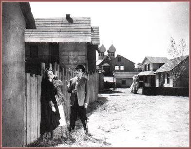 | Title: | Moishe Oysher and Anna Appel in Yankl der Shmid (U.S.A., 1938). Note the onion-domed Orthodox church in the background: Edgar G. Umer built this "shtetl" on a monastery near Newton, New Jersey, and used it for his subsequent Ukrainuan talkie, Cossacks in Exile. |