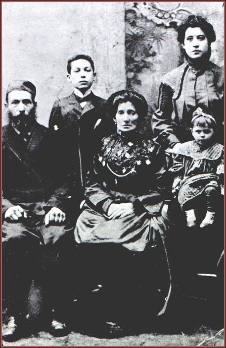 | Title: | The woman and the two girls are the mother and sisters of Menashe Skulnick; the man in the skullcap is his father and Menashe is standing right next to him. |