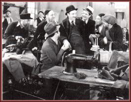 Welthy sweatshop owner Uncle Moses (Maurice Schwartz) greets his landsmen. Ancle Moses (U.S.A., 1930) was based on Schwartz's stage adaption of Sholom Asch's 1918 novel and it was the most prestigious Yiddish talkie to date.