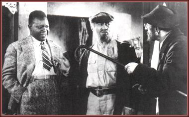 | Title: | Nosn's American colledge Jim (kador Ben-Salim, left) and his father, Tsale (Solomon Mikhoels, center). The town cantor is suitably impressed: "This is suitably your Nosn from America? how did he get so blackened...like the earth?" |