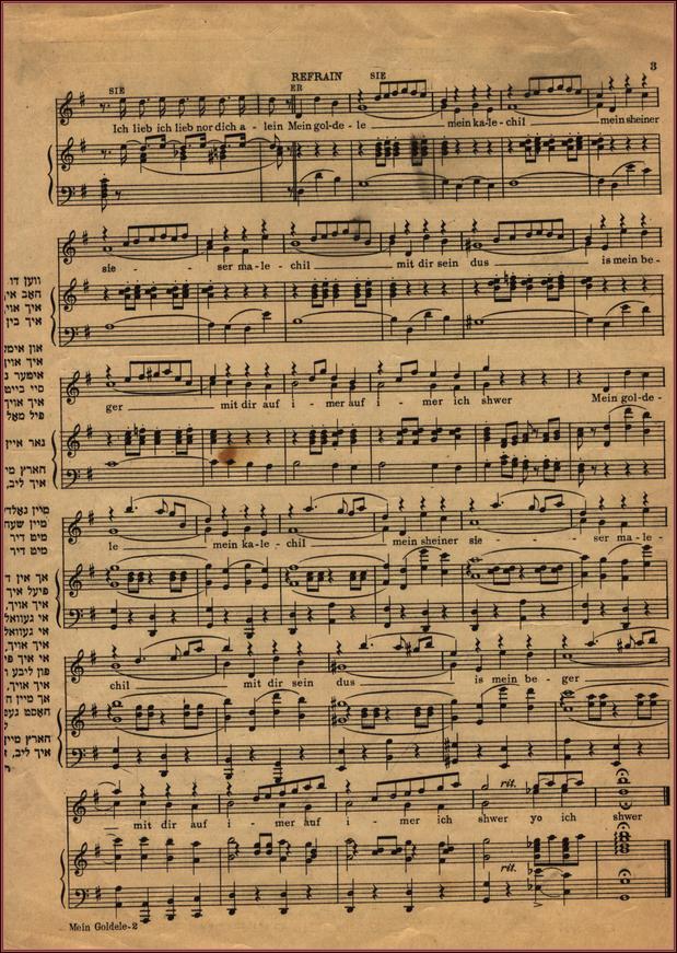 | Title: | Sheet music for Mayn Goldele, music by Joseph Rumshinsky, words by Louis Gilrod, p.3 Page 3 |