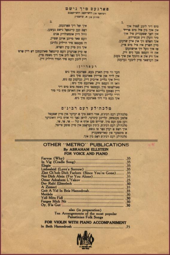 | Title: | sheet music for Farges Mikh Nit and Malkele Dem Rebn's, p.6 Page 6 |