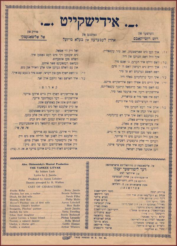 | Title: | Back cover of sheet music for Yidishkayt, p.6 Page 6 |