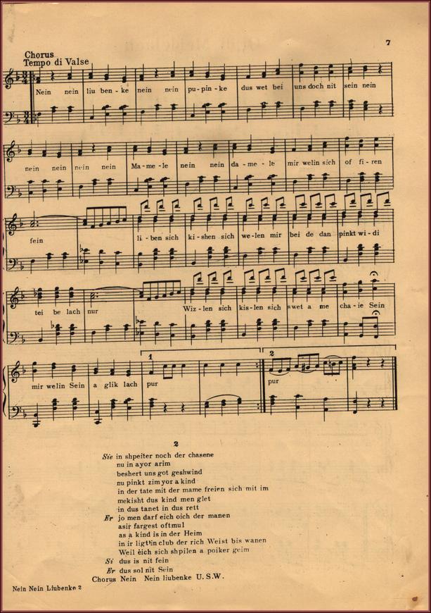 | Title: | sheet music from Liovka Maladiets, words and music by Shumsky and Aaron Lebedev, p.1(includes sheet music for Blimelakh, Meydelakh Sheyninke, Neyn Neyn Luibinke, Oi Di Meydelakh) p.7 Page 7 |