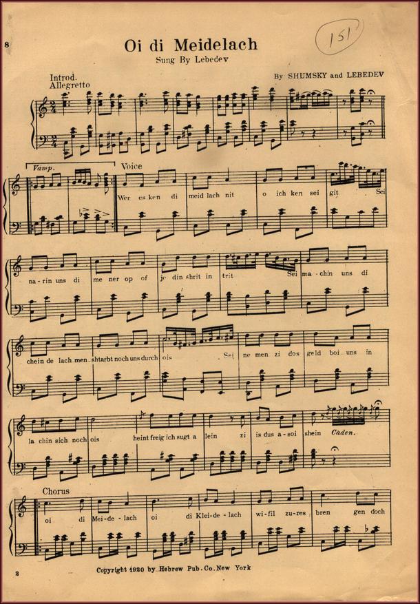 | Title: | sheet music from Liovka Maladiets, words and music by Shumsky and Aaron Lebedev, p.1(includes sheet music for Blimelakh, Meydelakh Sheyninke, Neyn Neyn Luibinke, Oi Di Meydelakh) p.8 Page 8 |