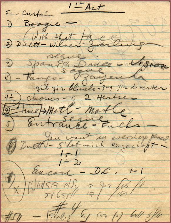 The Baker's Sweetheart by Sholom Secunda. List of Musical Numbers, Act I