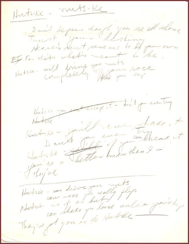 | Title: | The Kosher Widow by Sholom Secunda: Miscellaneous Scores and Parts. Lyric sheet: "Hutske" |